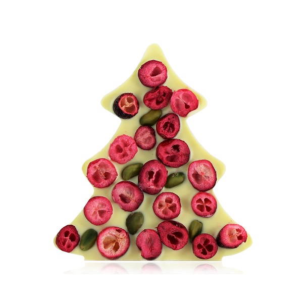 Czekolada świąteczna Choinka z białej czekolady z pistacją i żurawiną 65g